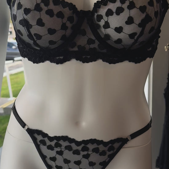 Delicate embroidered hearts with underwire top and thong bottoms will be giving you all the heart eyes!