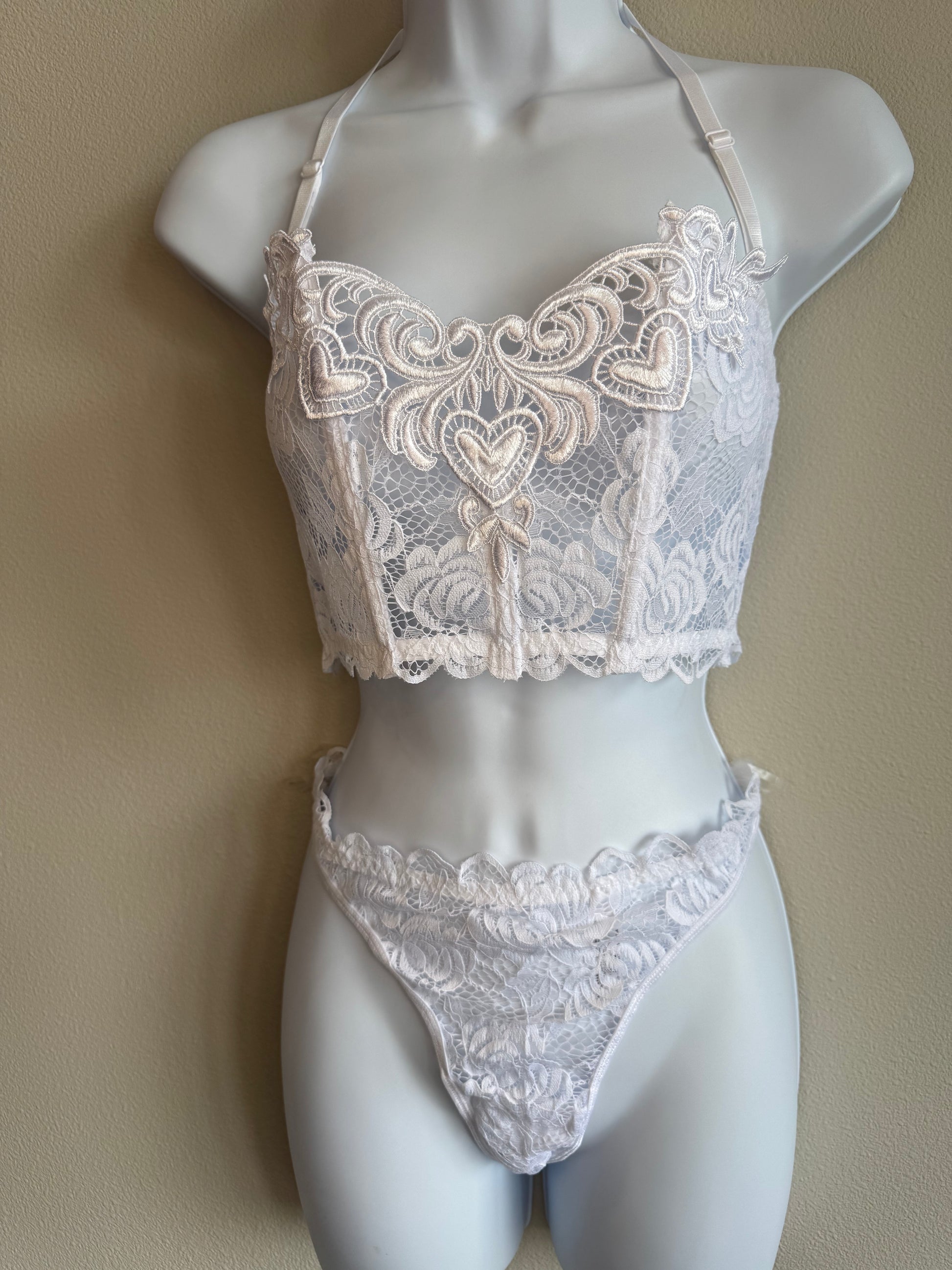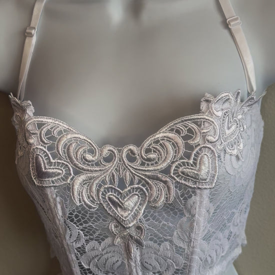Featuring delicate floral lace, heart-shaped embroidery, and a structured bustier-style top, The Juliette blends romance and elegance effortlessly.