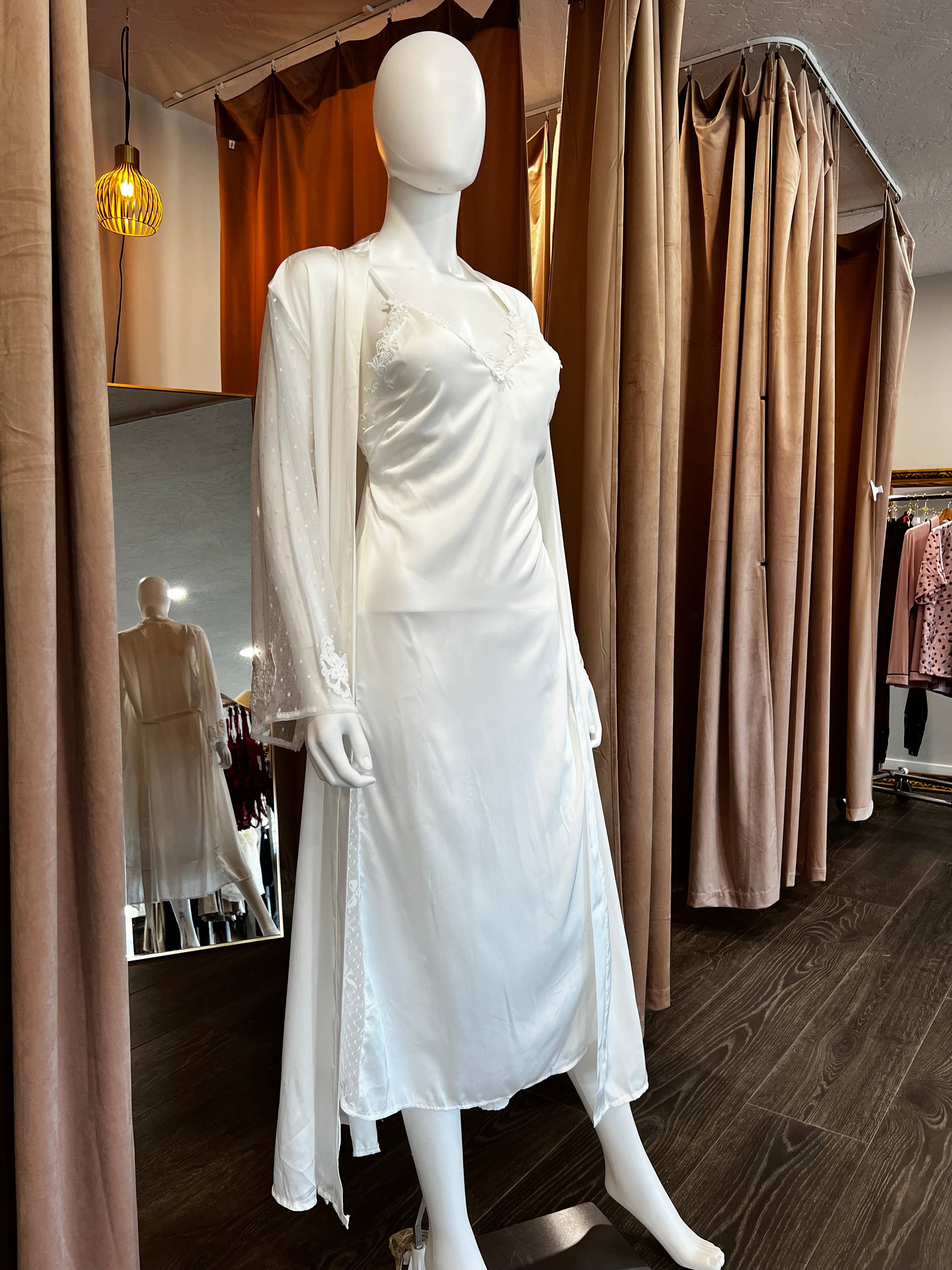 This enchanting robe is designed to make you feel like royalty every time you slip into it. The delicate sheer sleeves add a touch of sensuality to this robe while keeping it tasteful and refined.