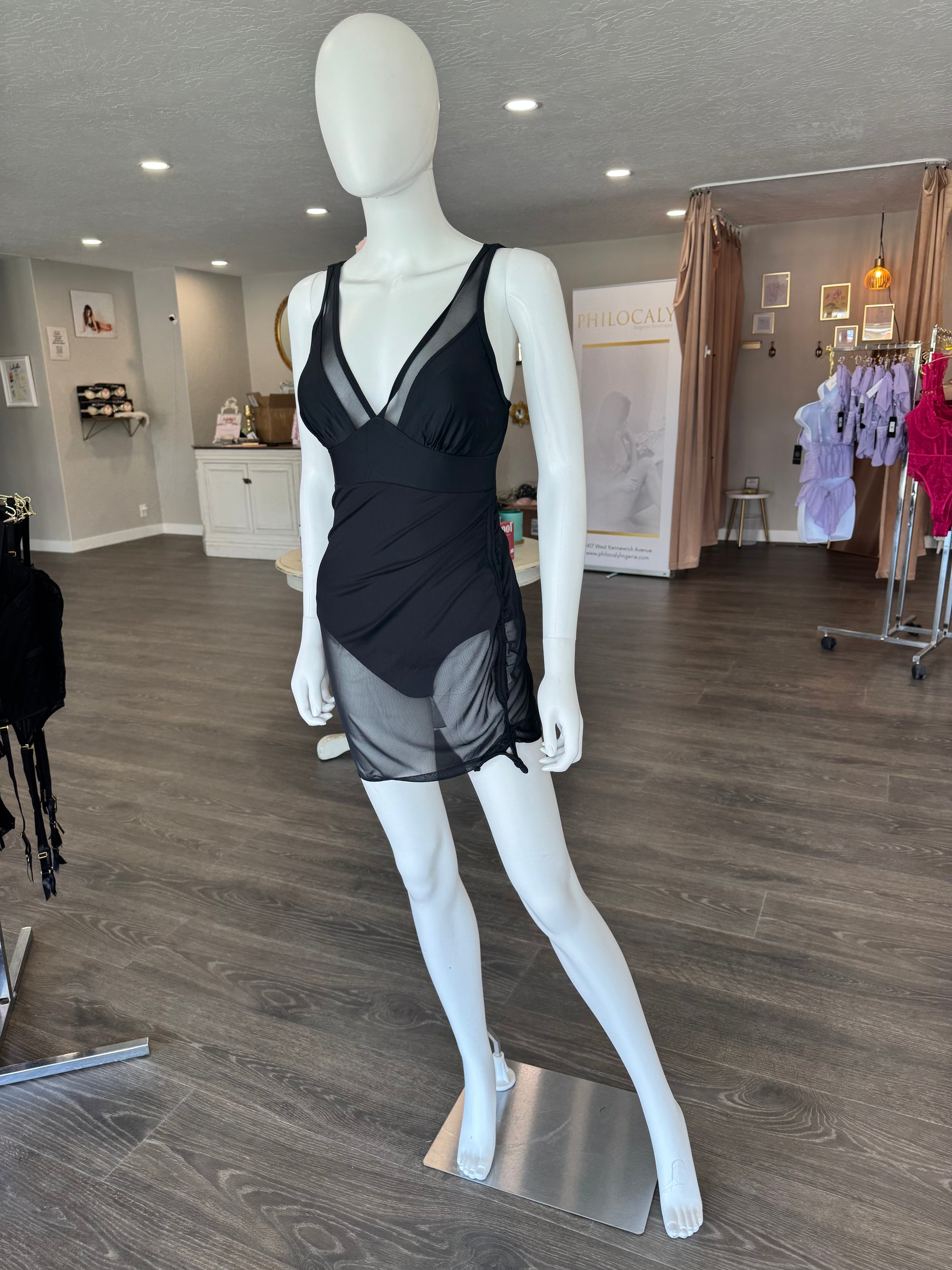 The Vanessa One-Piece is where confidence meets allure. Designed with a supportive v-neck, sleek mesh paneling and overskirt, and a curve-loving silhouette with tummy control, this swimsuit turns heads from beachside to pool deck. The attached drawstring mesh ruched skirt overlay adds a flirty, feminine touch while offering a little extra coverage. Equal parts supportive and daring, Vanessa is your ultimate summer statement.