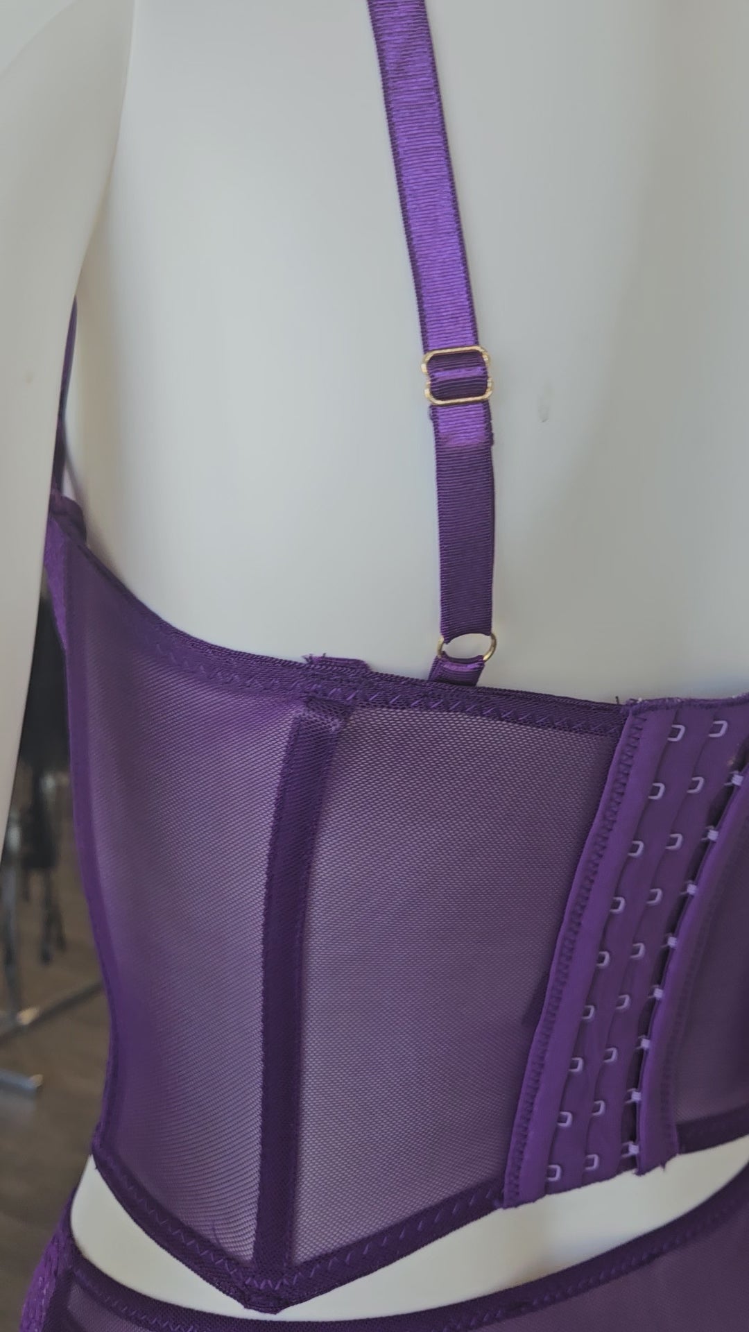 Stretch lace and mesh bustier with vintage style boning & underwire. Pair with the matching Violet panty!